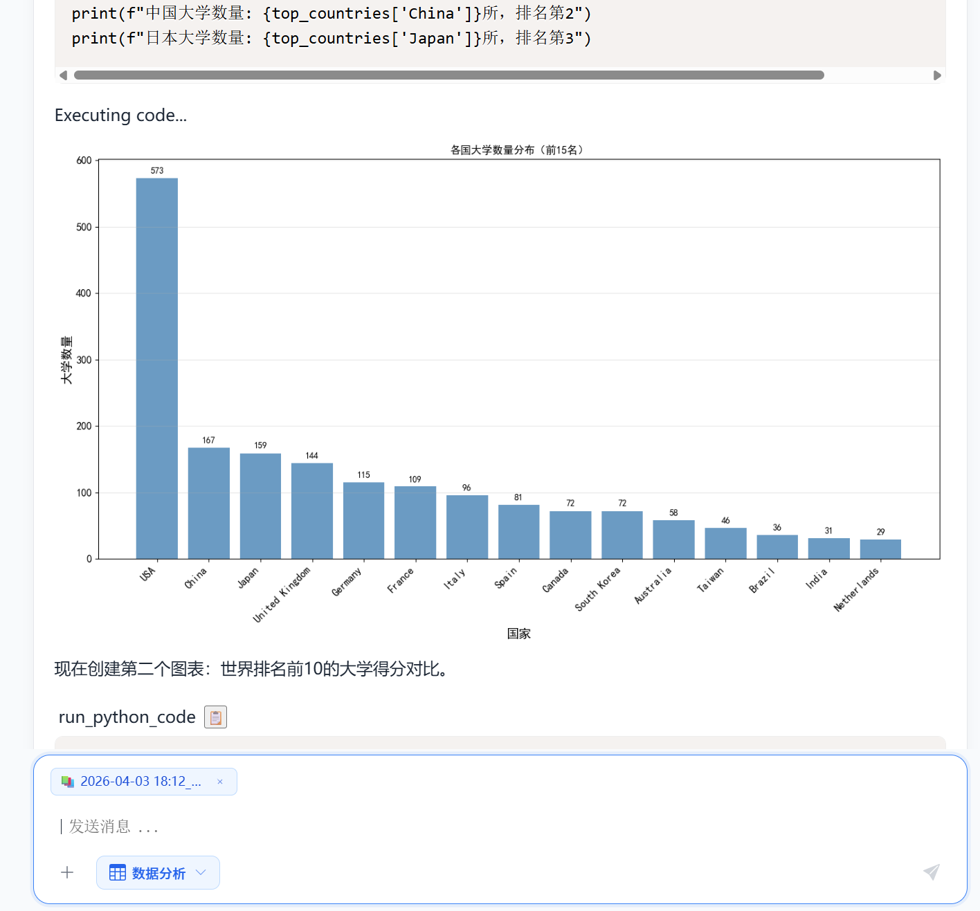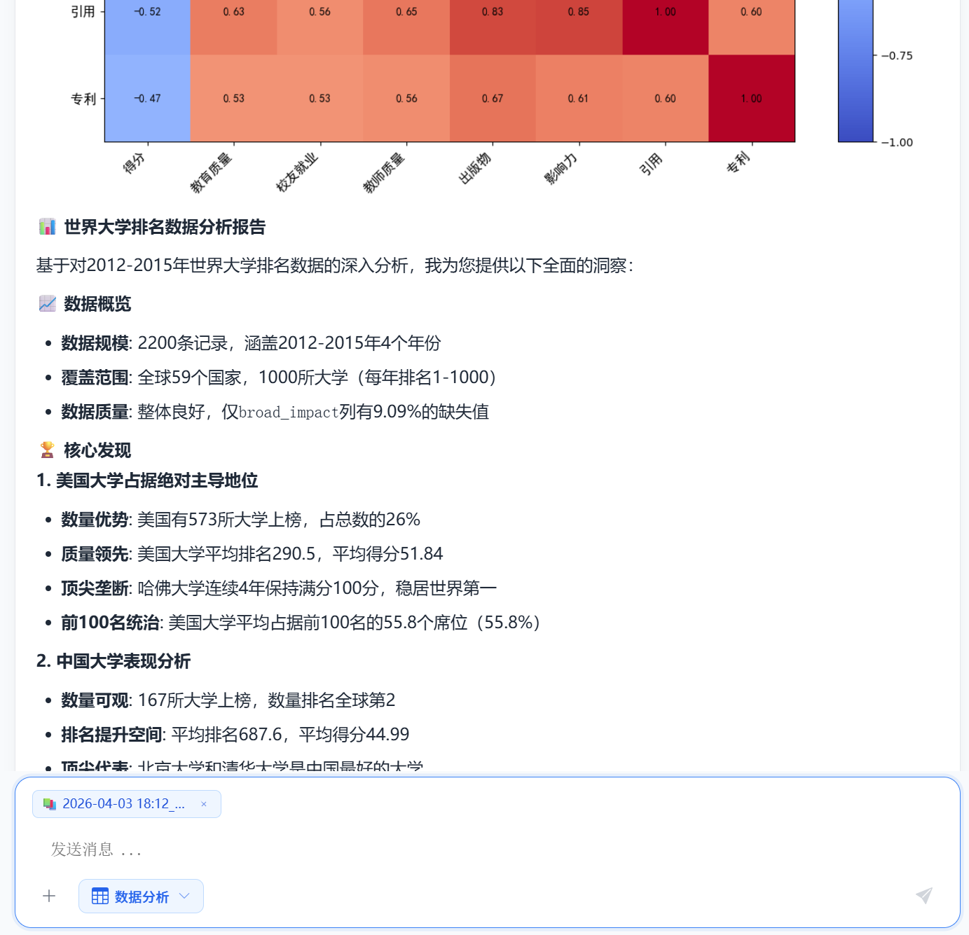 按次收费,数据分析 0.05元/次。一个csv/xlsx文件大概能分析出5-10张图片,分析速度非常快,全部过程实时流式输出包括生图。